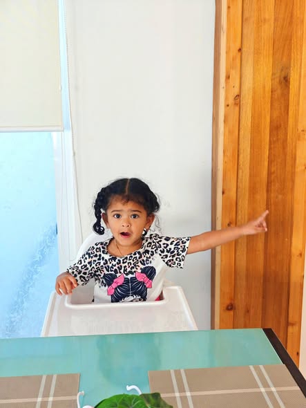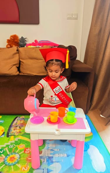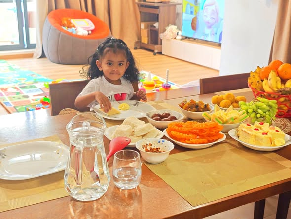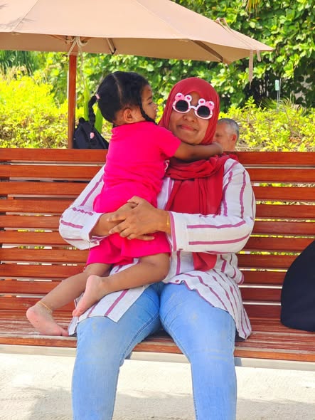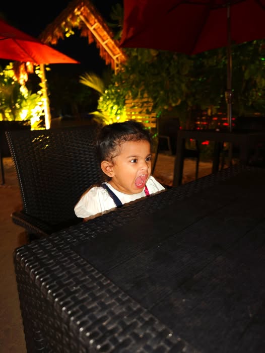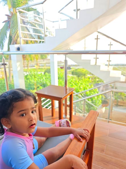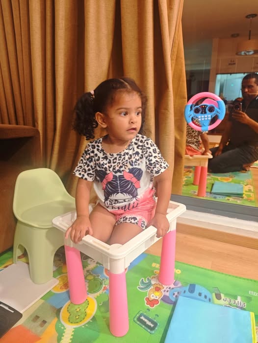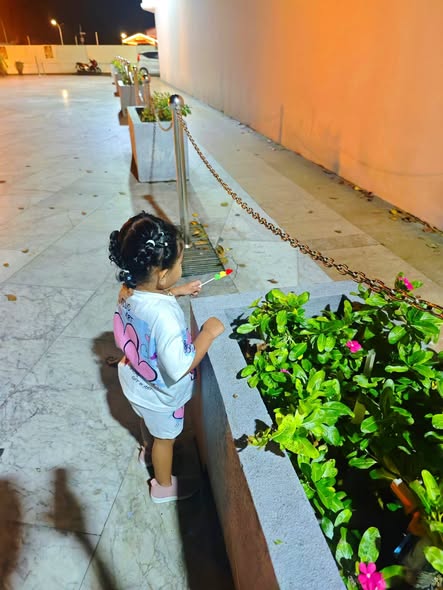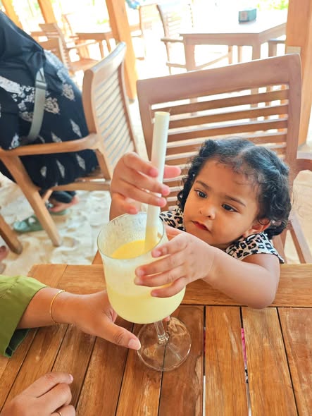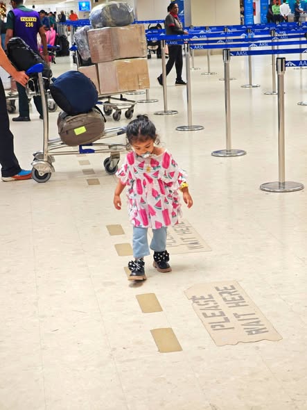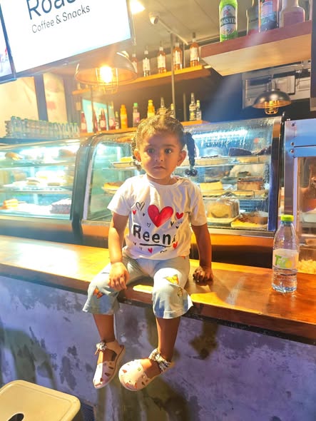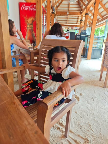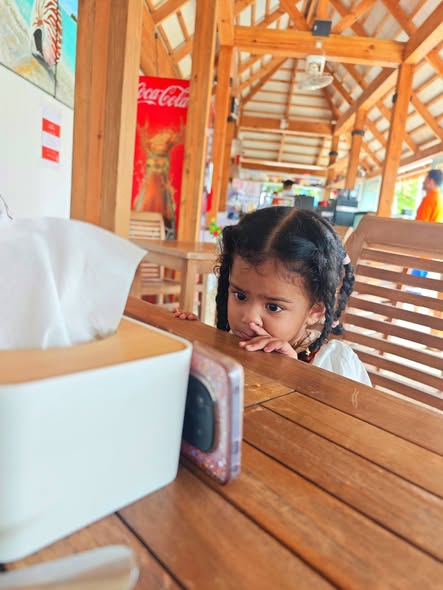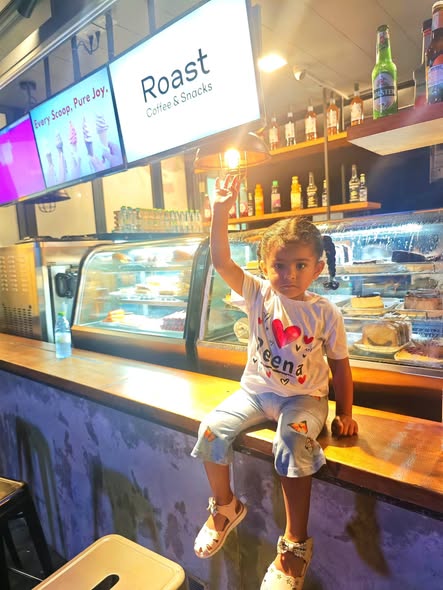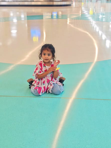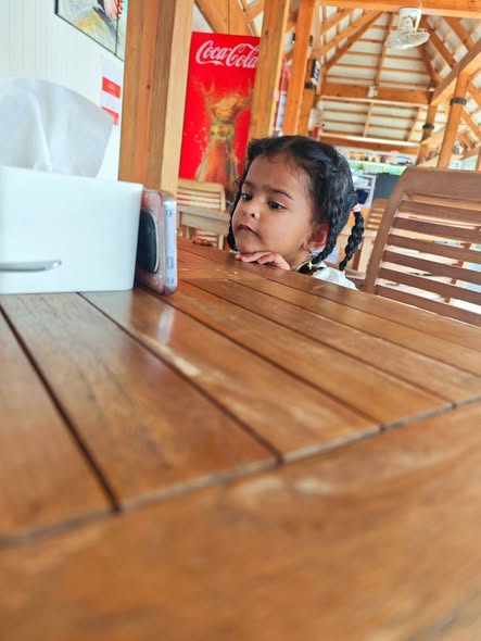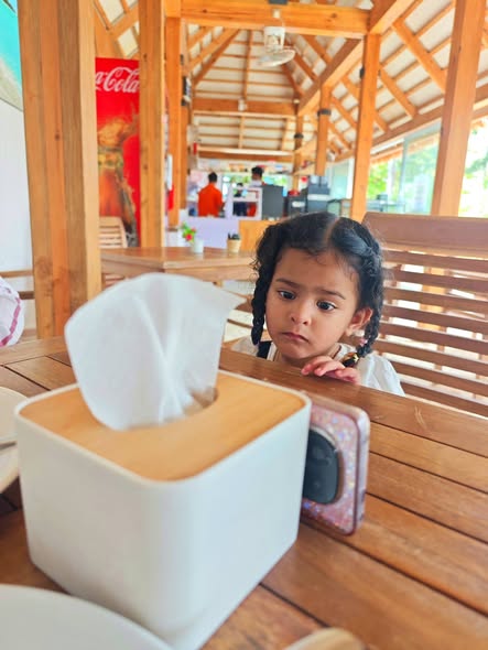 Daddy took me to the Standard Chartered Bank Priority Lounge at Jeddah Airport. It was so shiny and full of yummy food. Daddy and Mama sat happily, enjoying their meal. The chairs were soft, the lights were bright, and everything felt special. And me? I was the little explorer. I played with the plates… oops! I broke them! Clink, clank, crash! Everyone laughed, and Daddy smiled, because even in the fancy lounge, I was still his tiny girl making memories. Alhamdulillah, it was a happy time Daddy enjoyed his meal, Mama enjoyed his voice, and I made the story unforgettable.