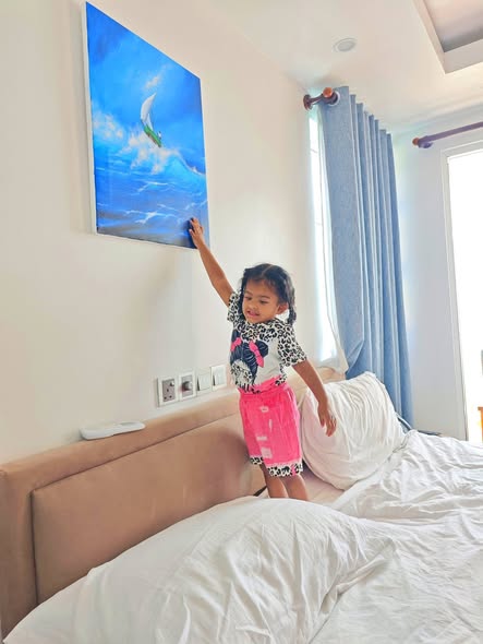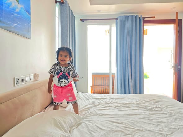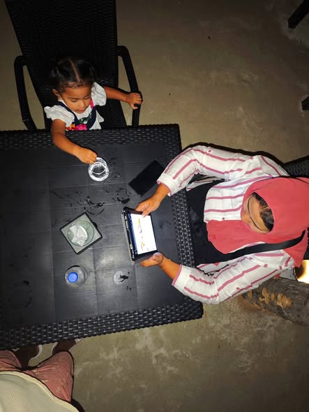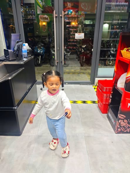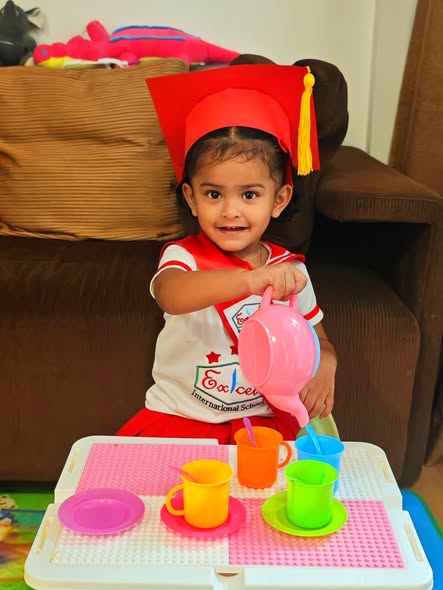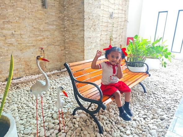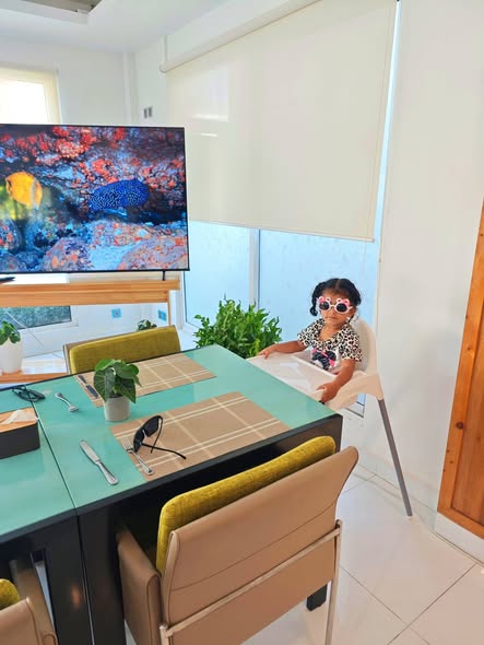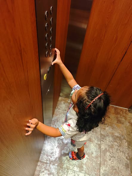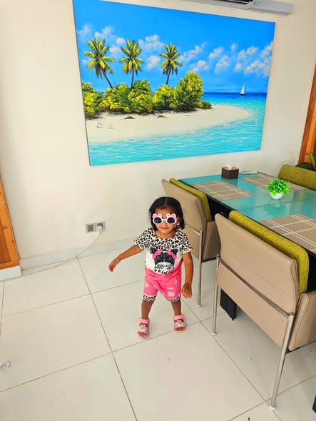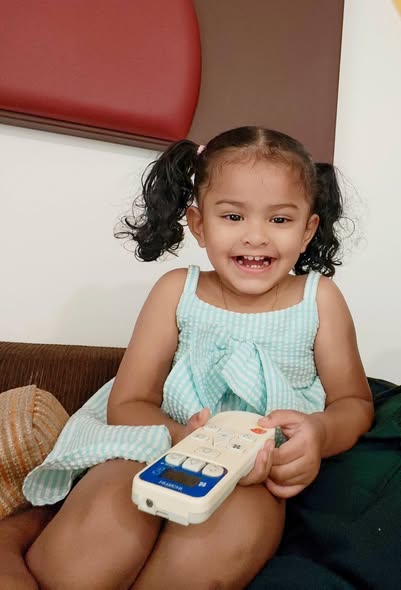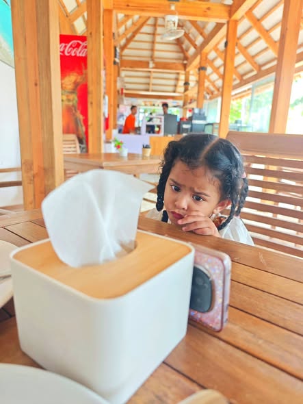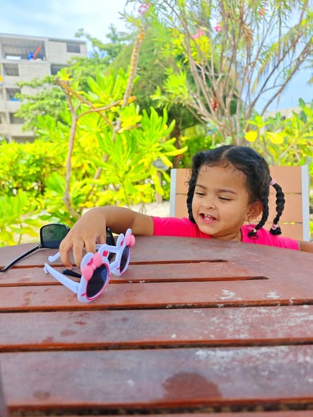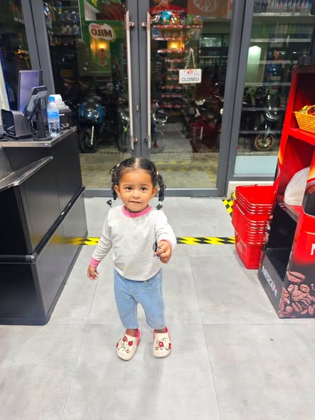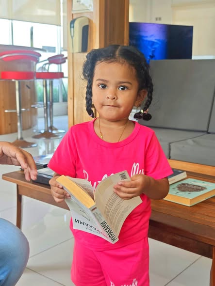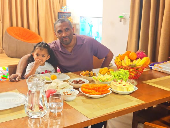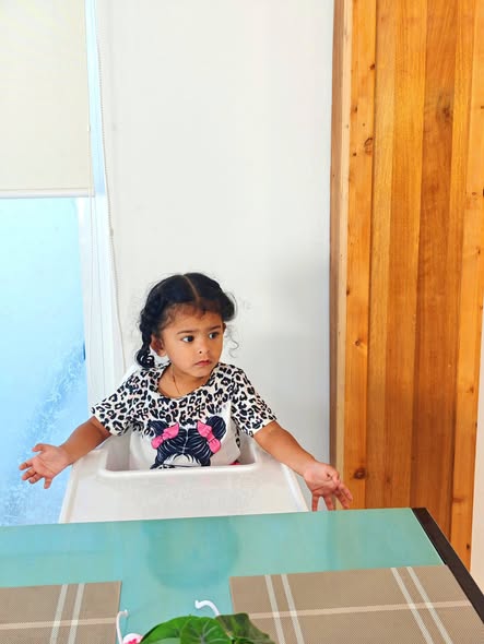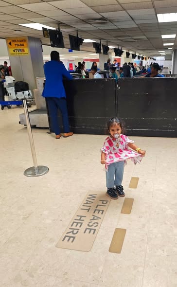 Daddy took me to the Standard Chartered Bank Priority Lounge at Jeddah Airport. It was so shiny and full of yummy food. Daddy and Mama sat happily, enjoying their meal. The chairs were soft, the lights were bright, and everything felt special. And me? I was the little explorer. I played with the plates… oops! I broke them! Clink, clank, crash! Everyone laughed, and Daddy smiled, because even in the fancy lounge, I was still his tiny girl making memories. Alhamdulillah, it was a happy time Daddy enjoyed his meal, Mama enjoyed his voice, and I made the story unforgettable.