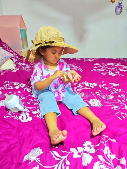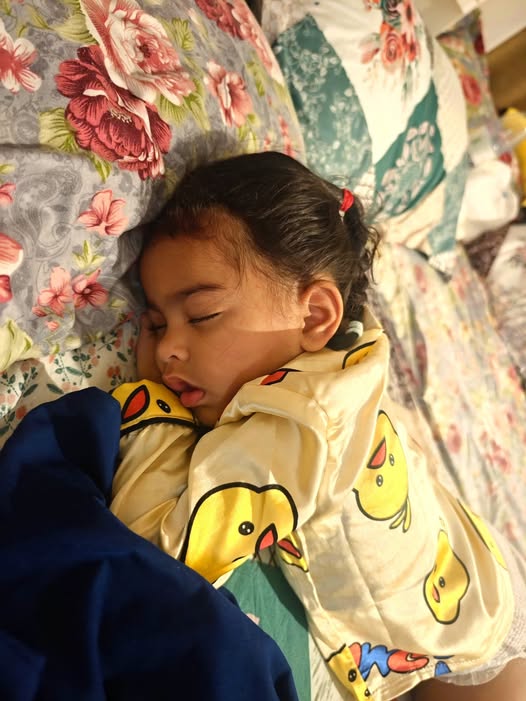 This is one of the longest times I have ever stayed in the hospital since I was born. Today was the second time they gave me an injection, to put medicine through a needle, because the doctor said I was weak from loose motion and vomiting. My tiny hand hurts, and I felt very tired and scared. I don’t know how to explain my feelings in words… it was really hard for me. But my daddy stayed with me the whole time. I held onto him for more than six hours, and that made me feel safe. Even though it was painful, I knew I wasn’t alone. Daddy and mama were there… and that made me strong. 💕