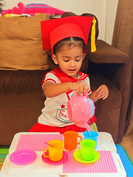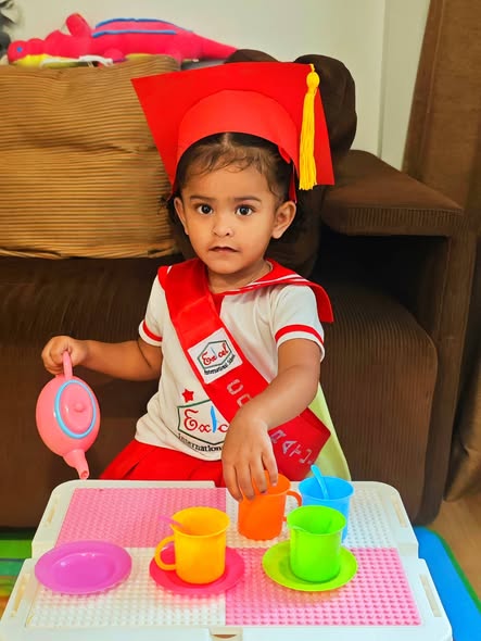 --The First Complaint and advice from Aunty-- Reena enjoyed playing in class, but it’s still difficult for her to sit on a chair. For faster development, please try sitting with her and doing activities at home also, and encourage her to talk. Also, try reducing screen time if she is using screens, and instead engage her in conversations.