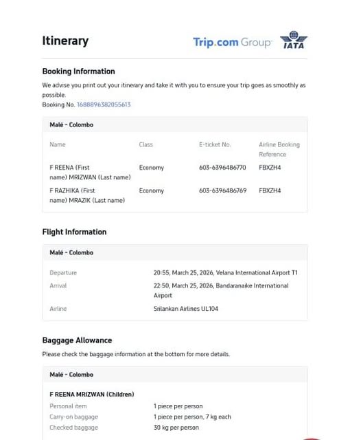 We experienced a long delay at the Immigration counter due to a system error. According to the system records, it showed that my dad had never visited the Maldives before, even though he has more than 100 embarkations from here. Because of this discrepancy, the officers took his passport photos for verification. After completing this process, they allowed us to proceed and board the aircraft.